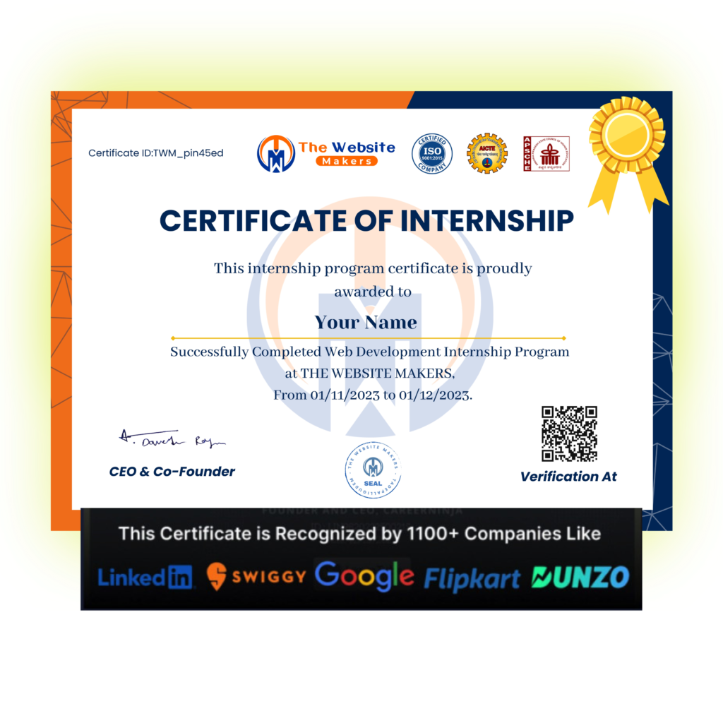 Get our industry-recognised Internship Certificate and showcase it in your resume and linked profiles to get more chances to get the Job.