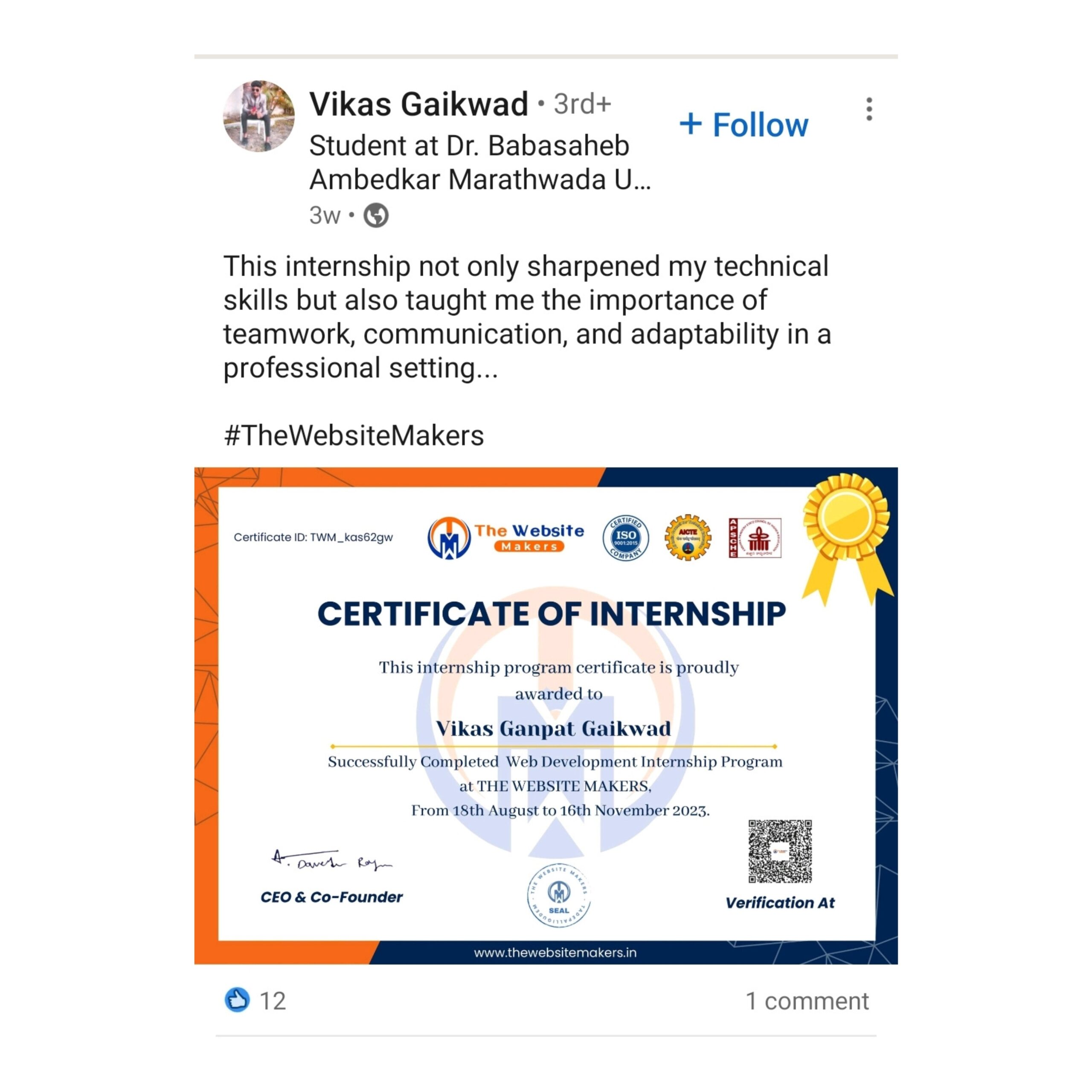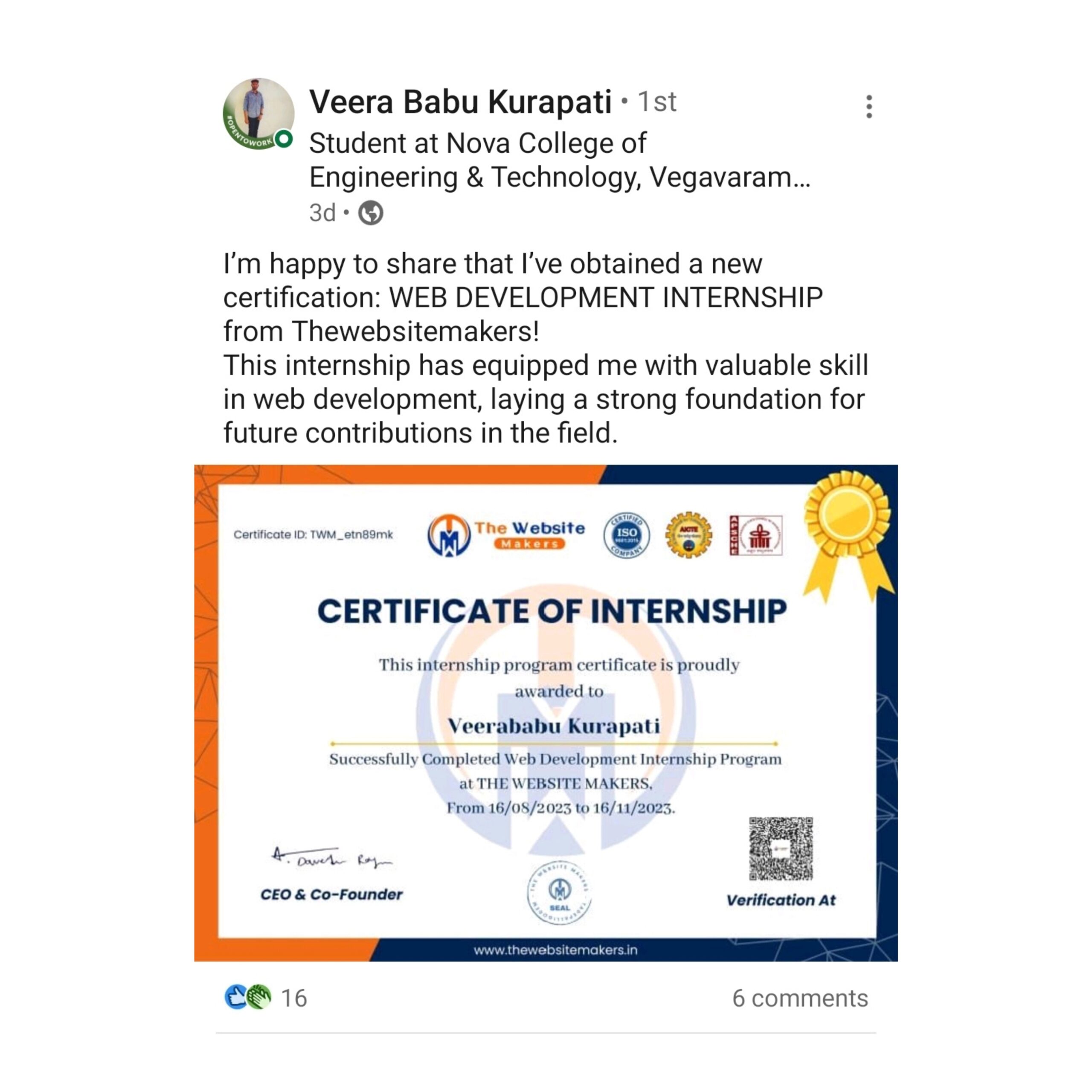 More than 8,000+ students received our Internship Certificate, submitted to their colleges, and added to their Resumes and LinkedIn.